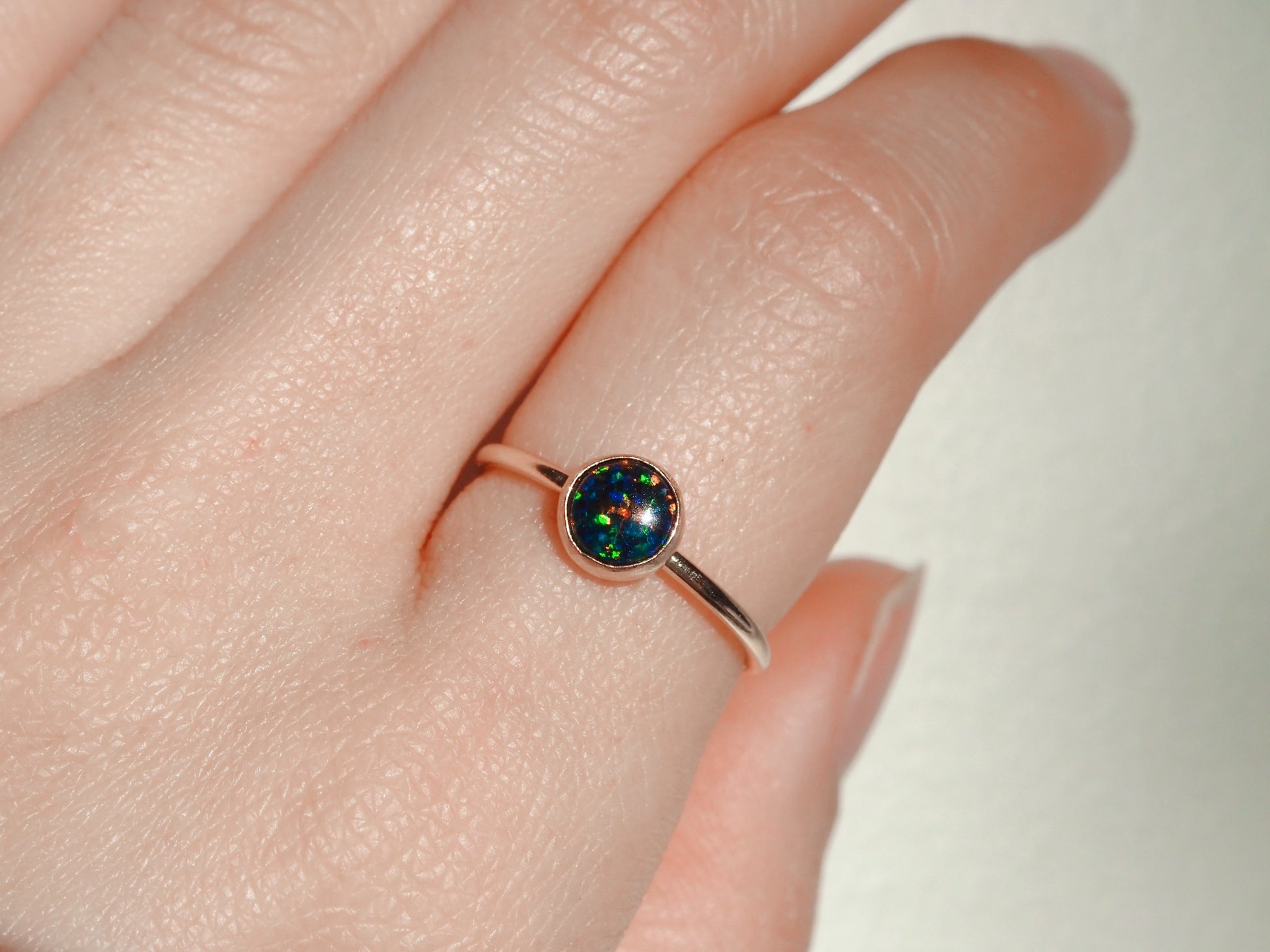 This dainty 14K gold-filled black opal ring is waterproof, tarnish-resistant, and perfect for everyday luxury.