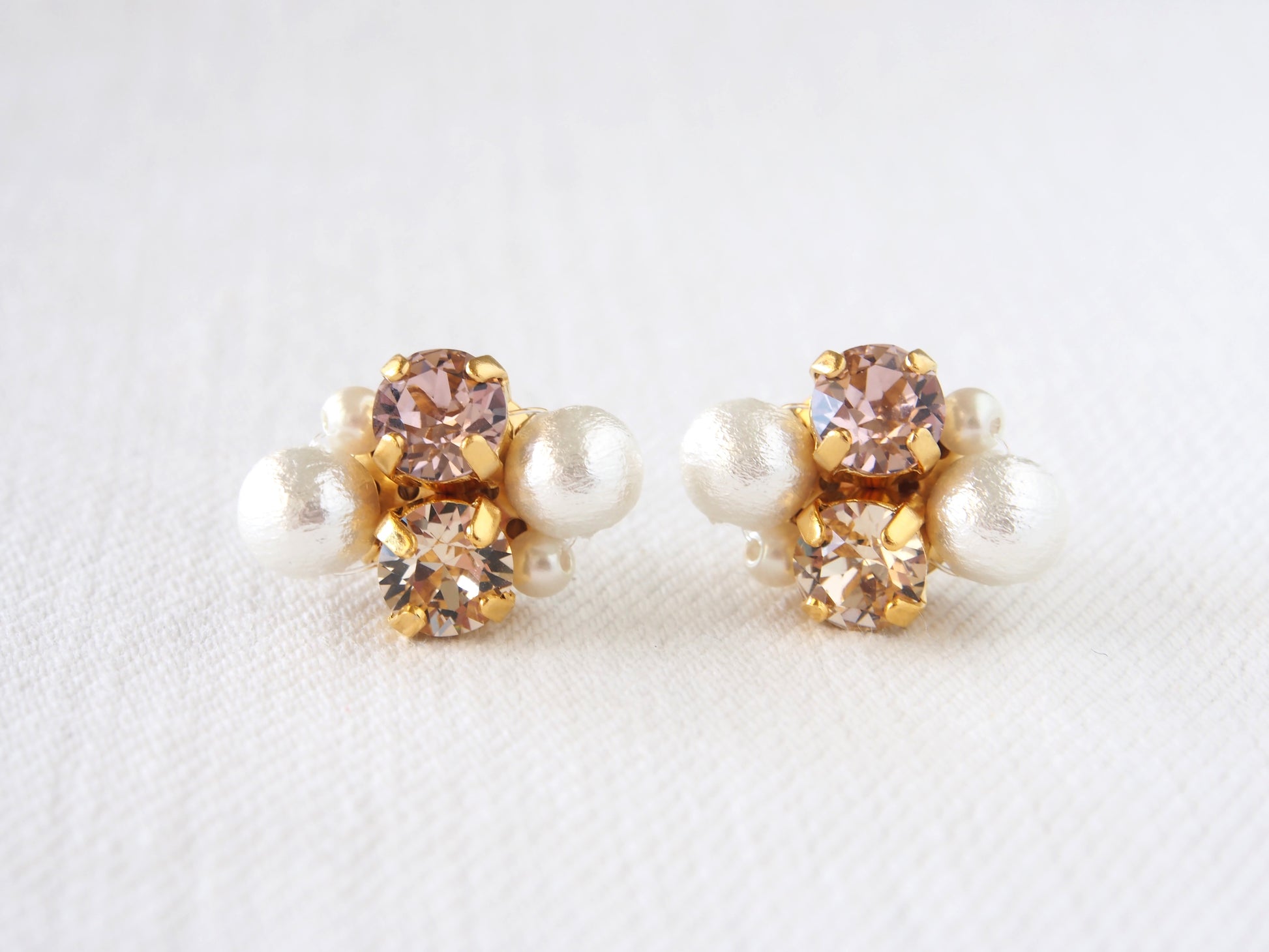 Discover the timeless elegance of our Vintage Rose Crystal Earrings, handmade in Melbourne. These earrings feature vintage rose and light silk Swarovski crystals with cotton pearls which are suspended by delicate gold-plated earring parts.