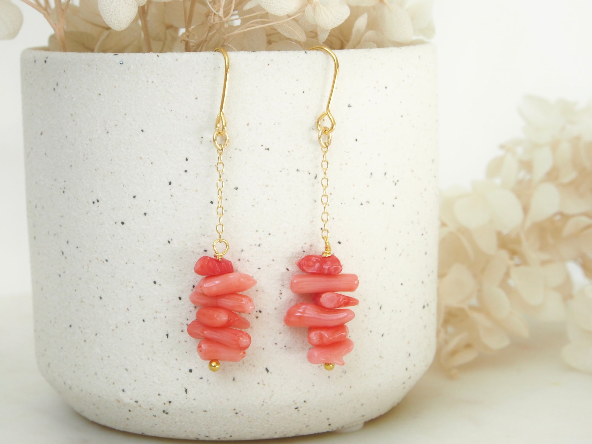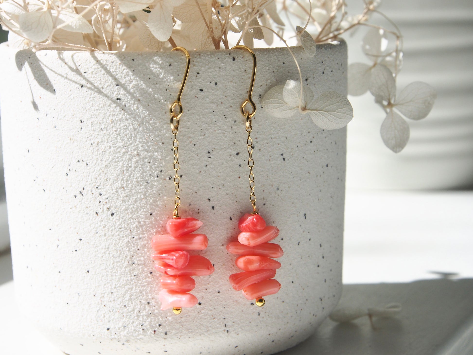 Add a touch of warmth and sophistication with our coral dangle earrings, perfect for any occasion.
