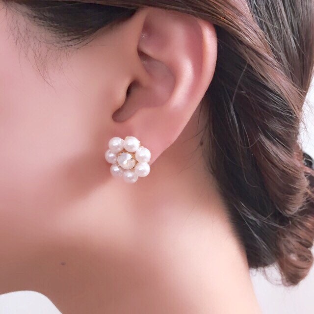 Gorgeous pearl flower with opal white Swarovski. Ideal for both special occasions and everyday wear.