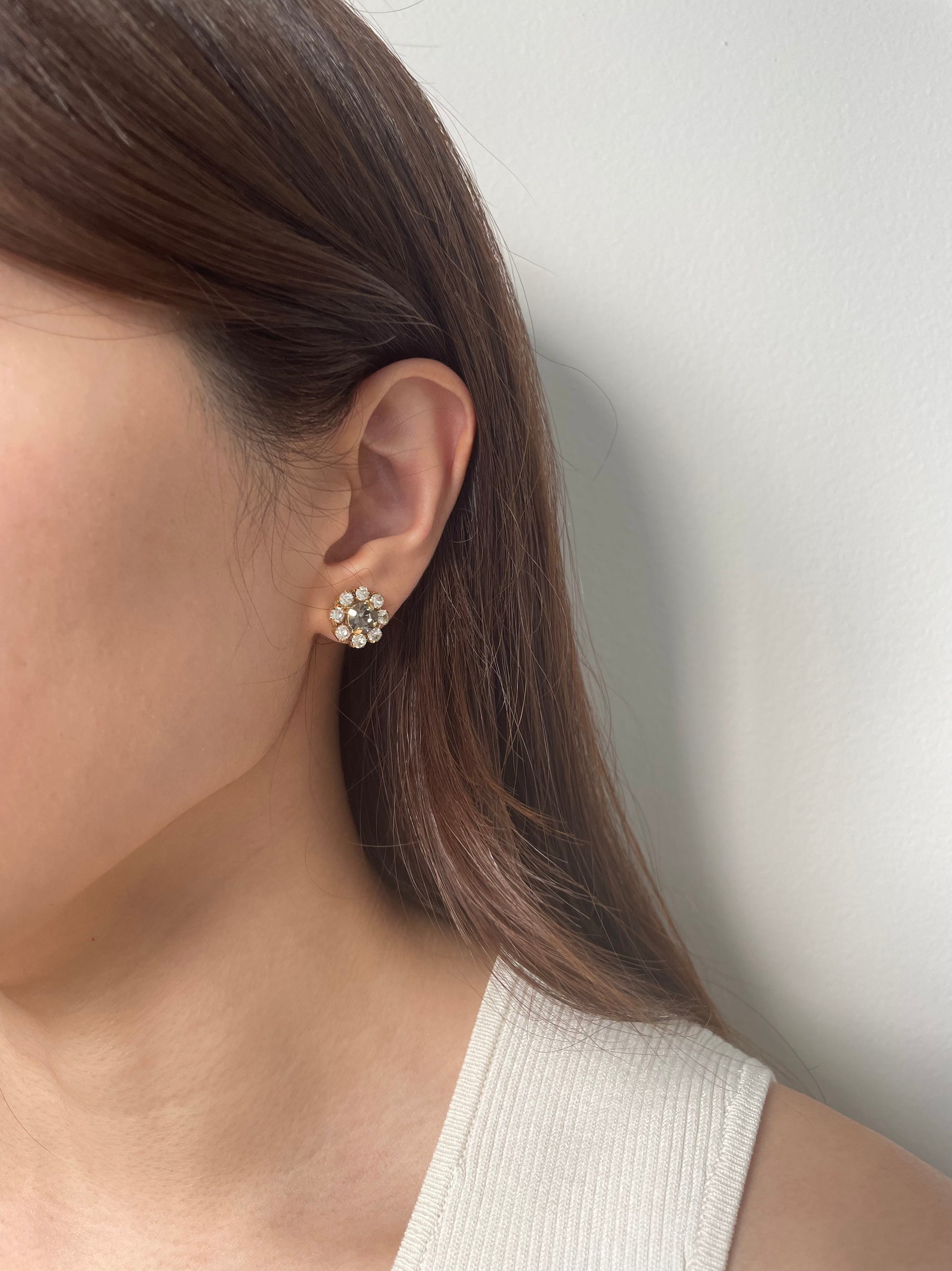 Black diamond Swarovski flower earrings.
