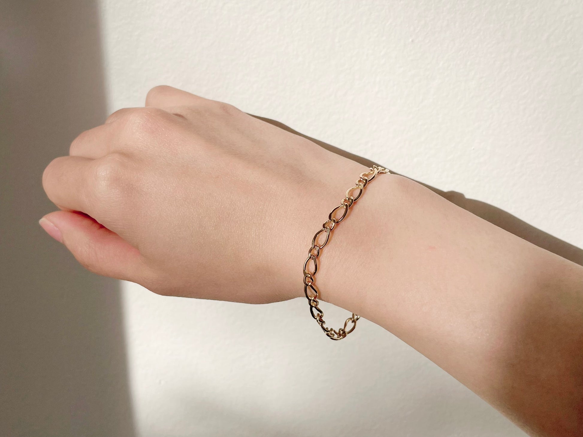 Make a bold statement with our Dainty Oval Figaro Chain Bracelet. This striking piece combines timeless elegance with contemporary style, perfect for any occasion.