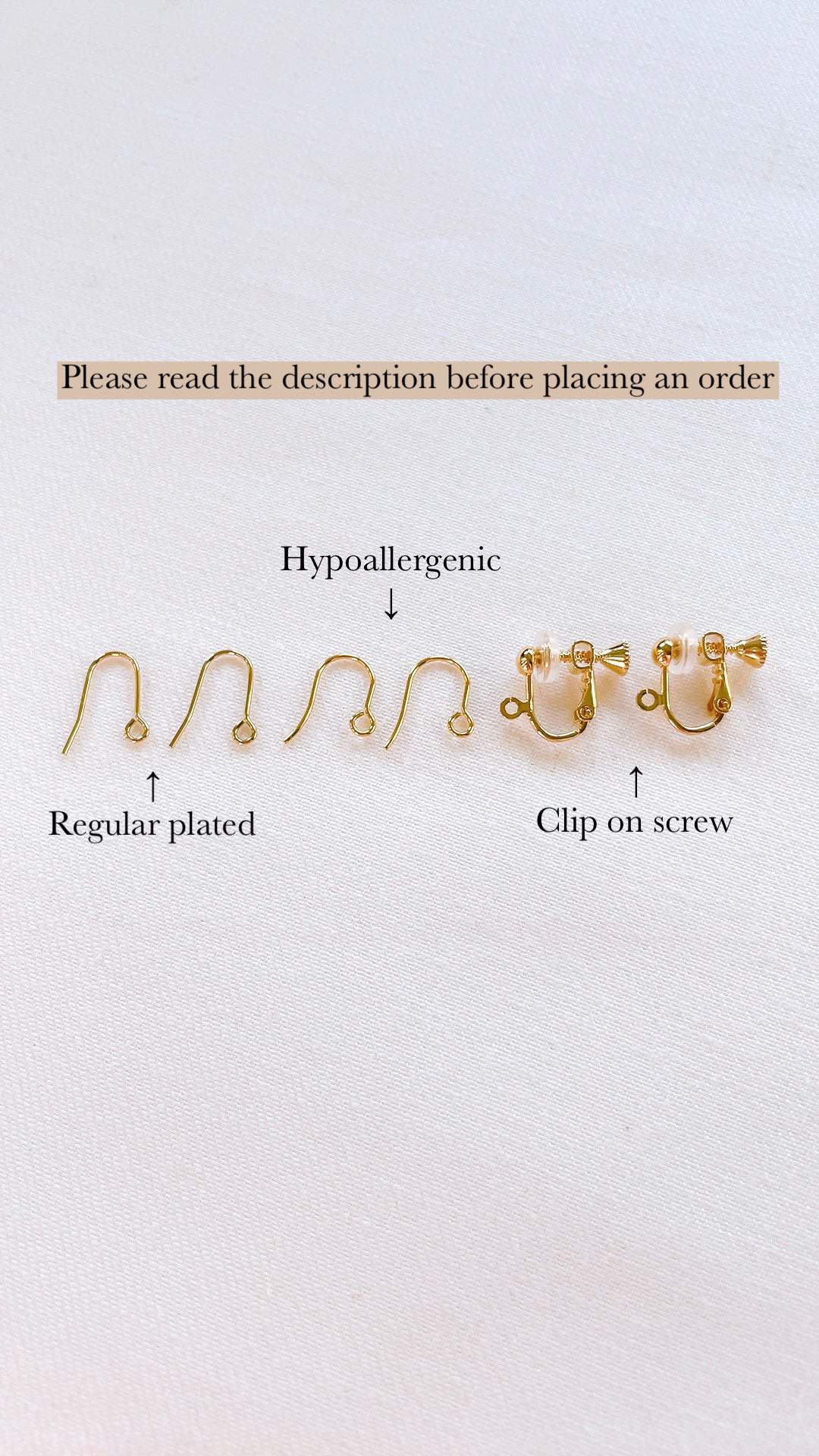- Clip on screw - Gold-plated screw clip-on with silicone backings. You can adjust the size with screws.