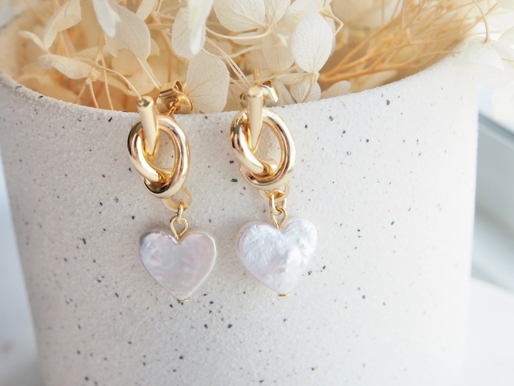 Discover the unique beauty of our Freshwater Heart Knot Earrings, featuring rare genuine pearls from Japan.