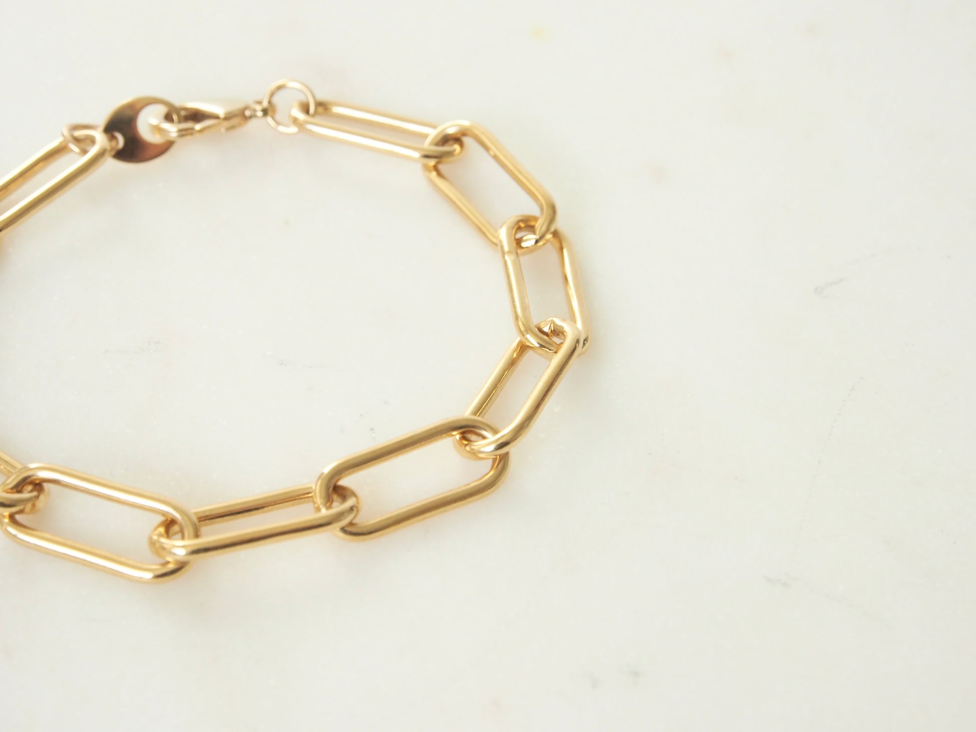 Make a bold statement with our Gold Chunky Paperclip Chain Bracelet. This striking piece combines timeless elegance with contemporary style, perfect for any occasion.